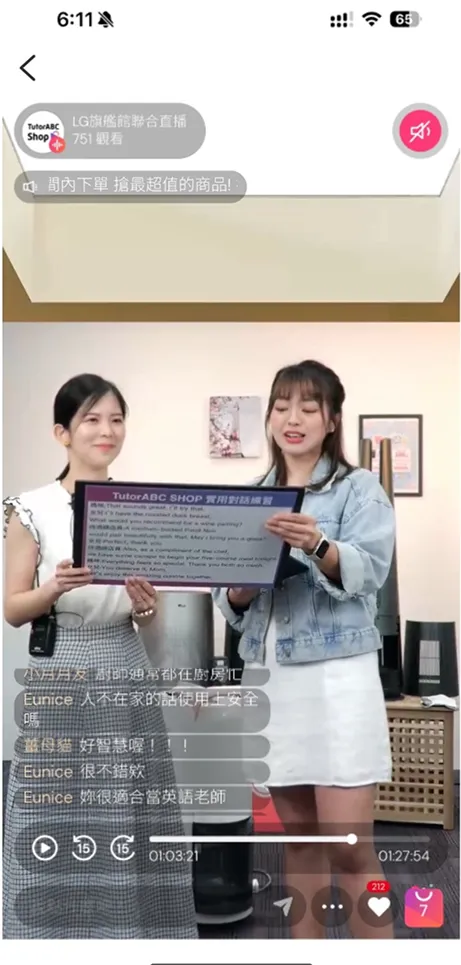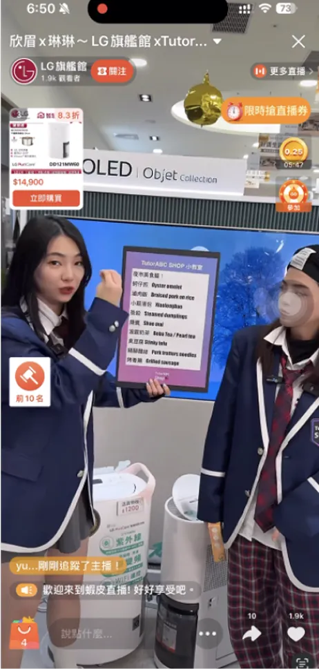 LG & TutorABC Shop scheduled live streams at peak times to promote specific new products & appliances at exclusive offers.